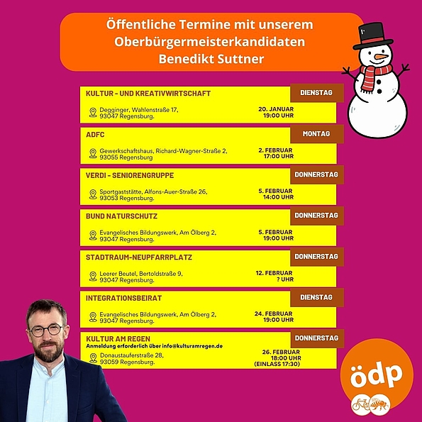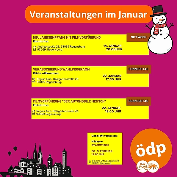 10.02.202619:00 - 23:00Amberger Congress Centrum ACC, Schießstätteweg 8, 92224 Amberg - 17ÖDP Kreisverband Regensburg-Stadt